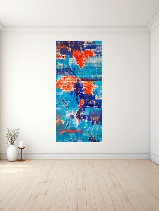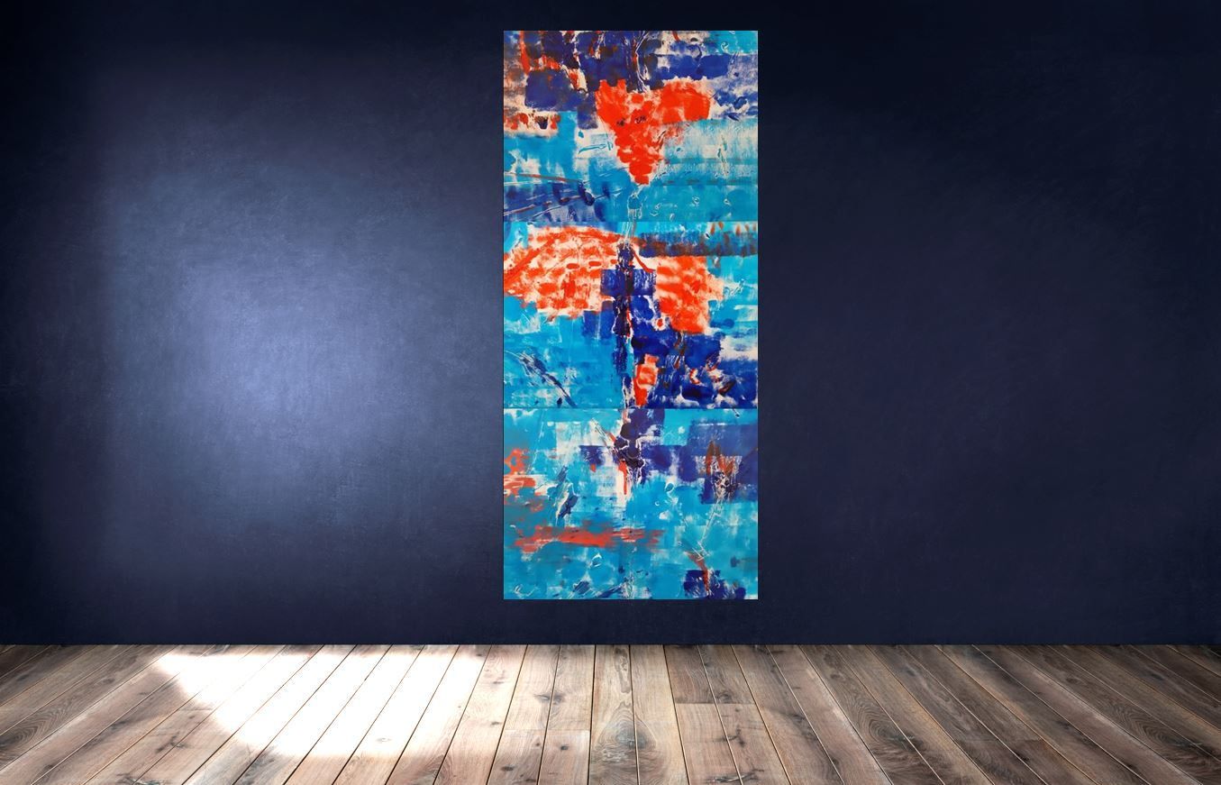 mit übereinanderliegenden Blöcken in leuchtendem Blau und