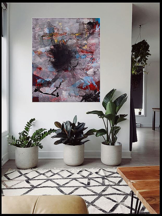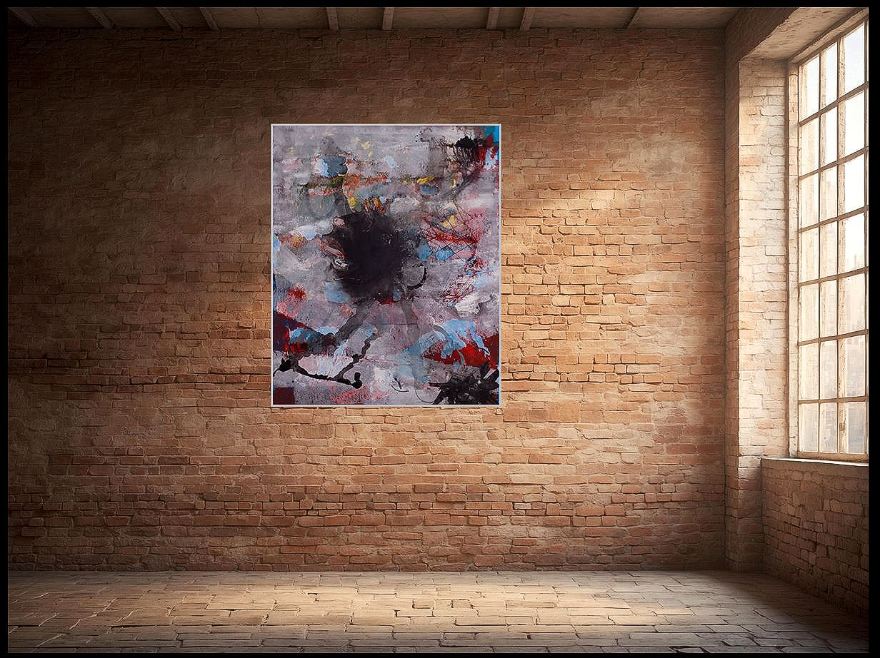 schwarzen Fläche, grauen und roten Farbstrichen.